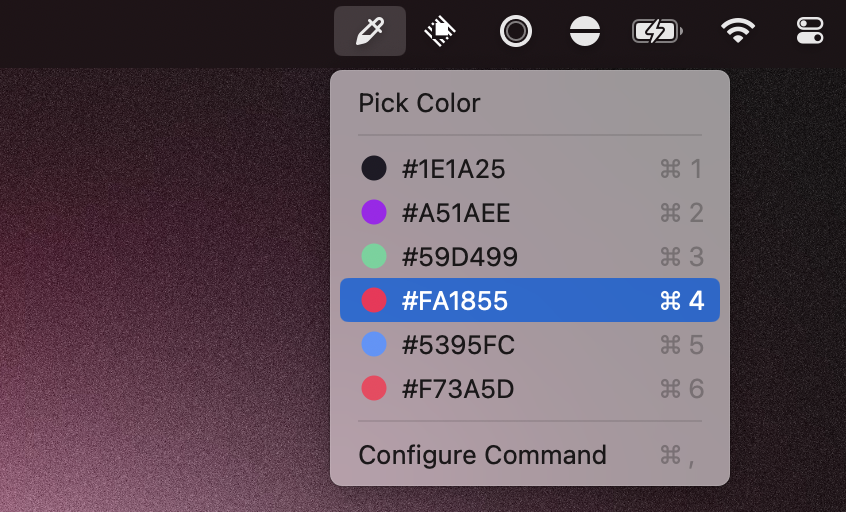 Then, you can find these colors by opening the Organize Colors command, in the Clipboard History, or simply in the Menu Bar command.