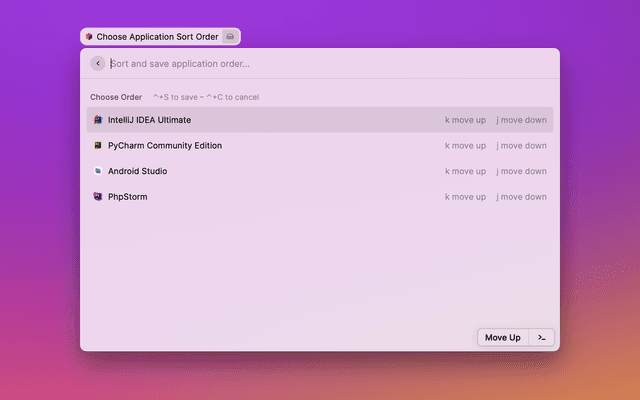 This extension should work out of the box. If you have multiple JetBrains apps installed, you can choose a priority app to bump to the top of the list in preferences.