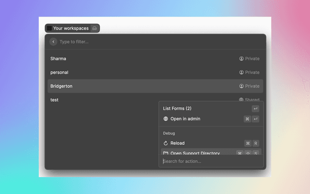 Explore your workspaces, list your form and get and overview of forms stats.